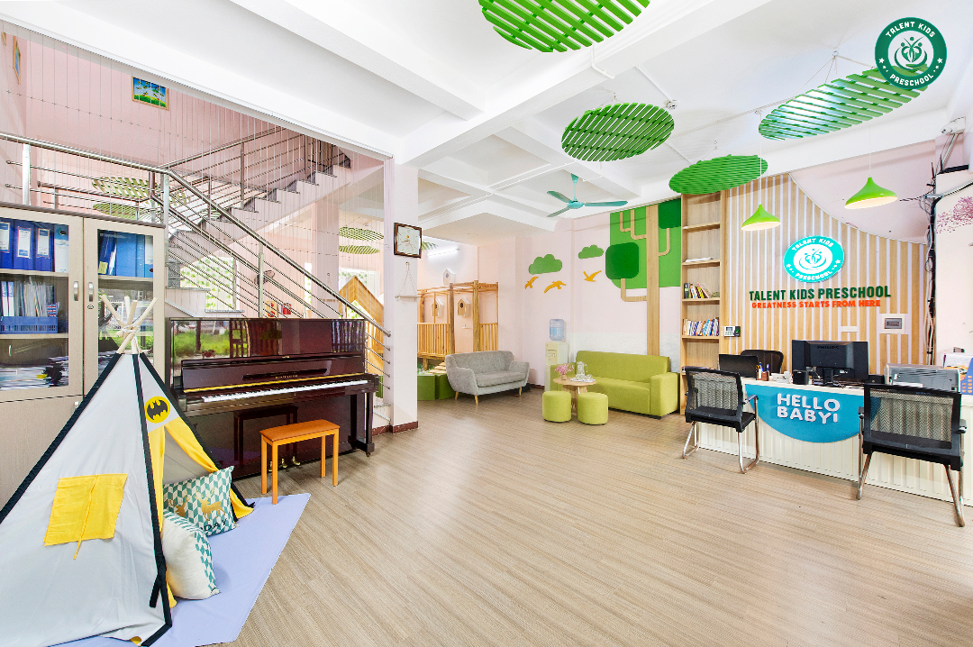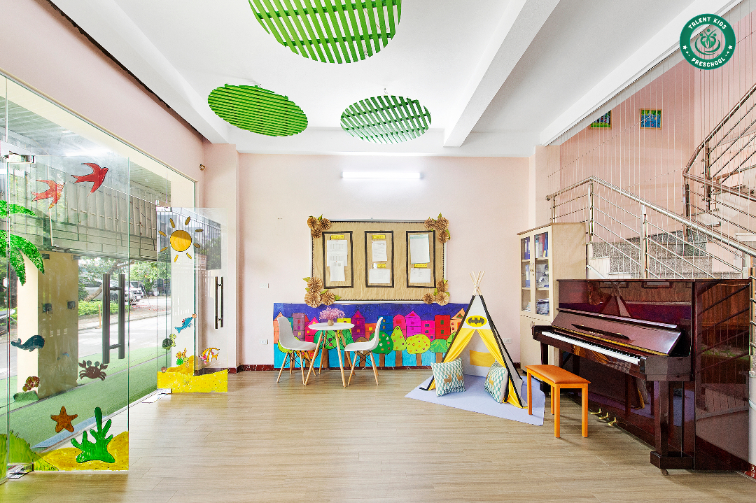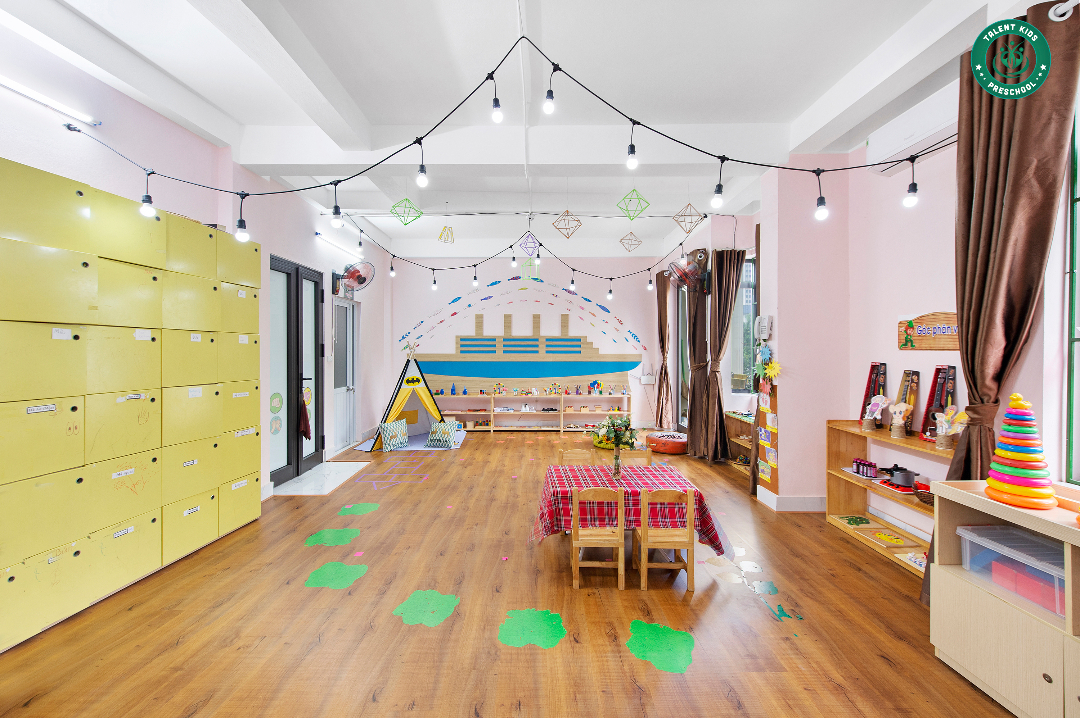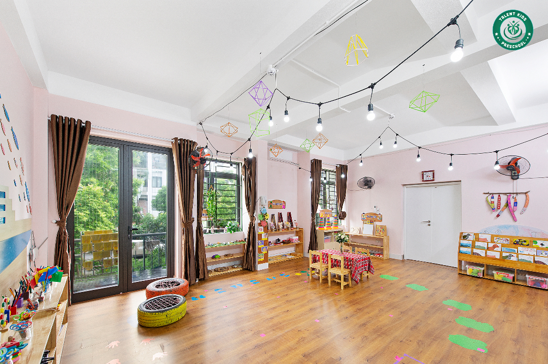 2. Trẻ được học Tiếng Anh cùng giáo viên nước ngoài 5 buổi/tuần. Chương trình tiếng Anh được thực hiện "liên môn", thông qua những giờ học ngoài trời, giờ kể chuyện (story - telling), các môn học bằng tiếng Anh: Language Arts, Social Studies, Math, Science… Đây là nét đổi mới trong chương trình giúp học sinh đồng thời phát triển tư duy ngôn ngữ – tư duy logic và kiến thức xã hội một cách toàn diện.